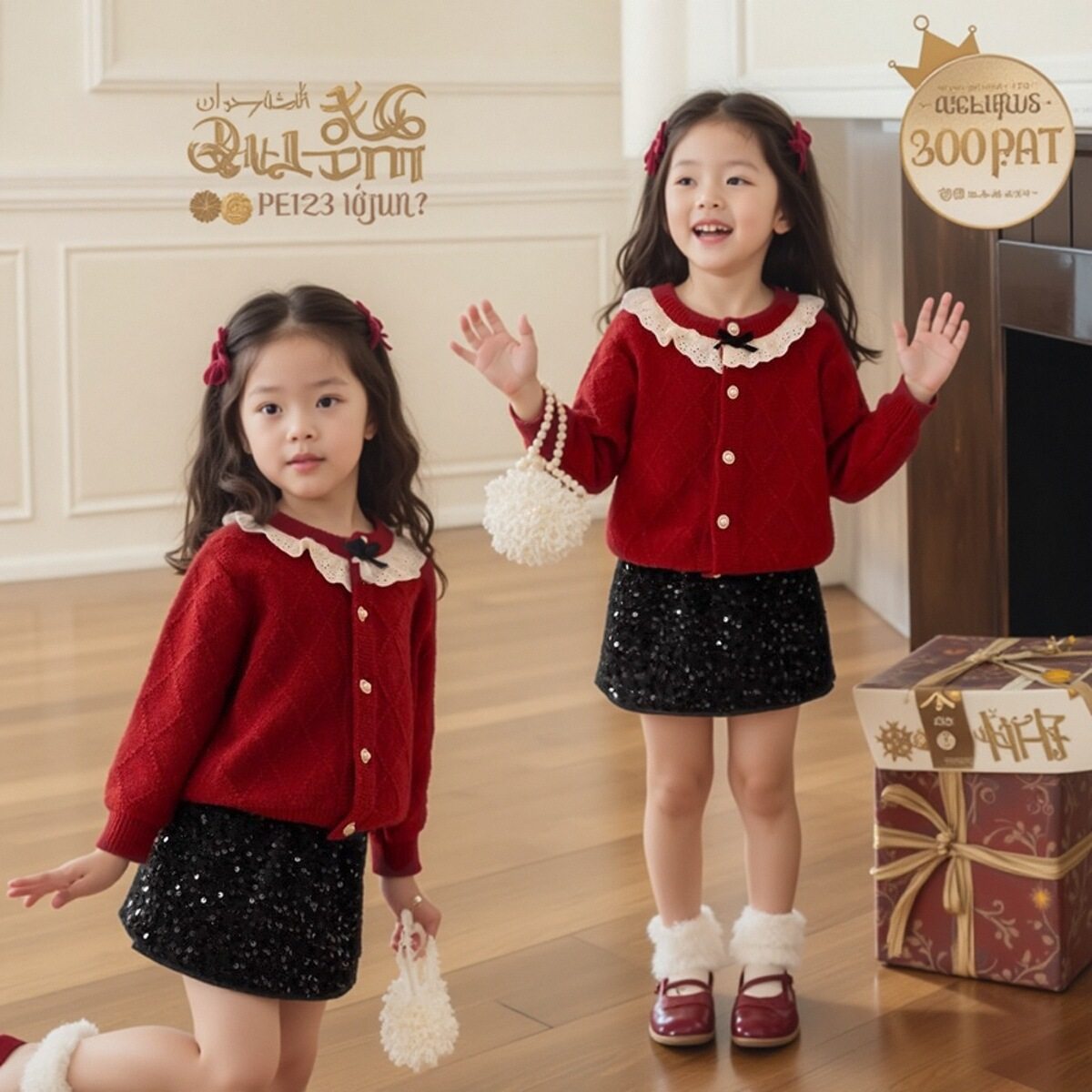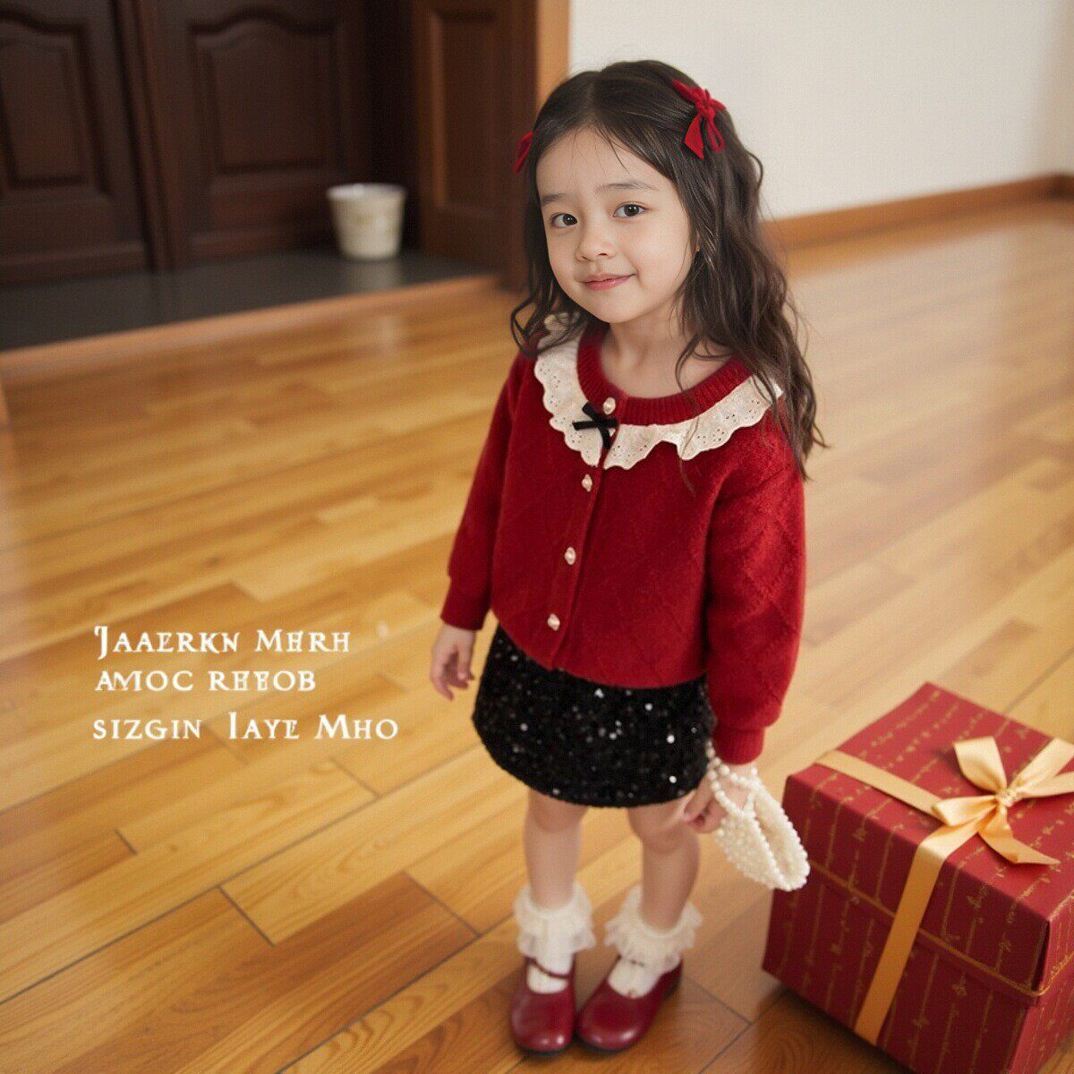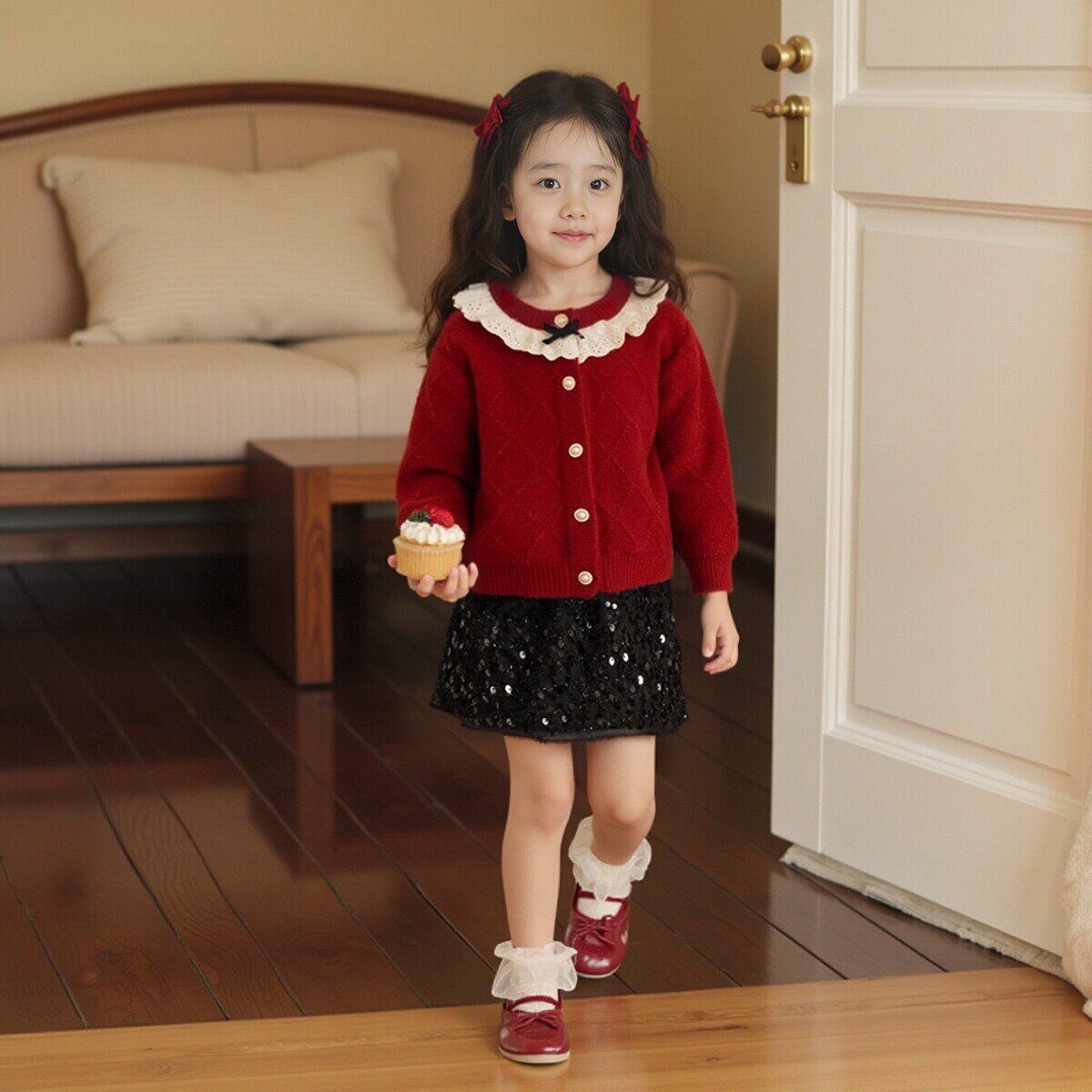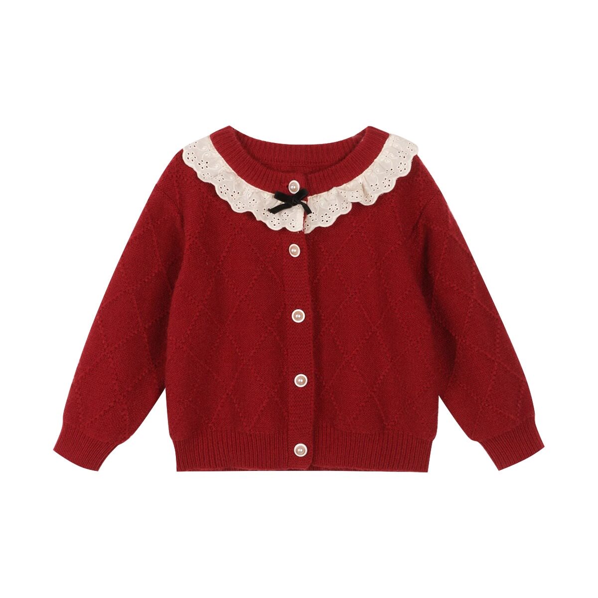 女童毛衣开衫春秋2025新款洋气儿童针织衫外套红色韩版小女孩上衣