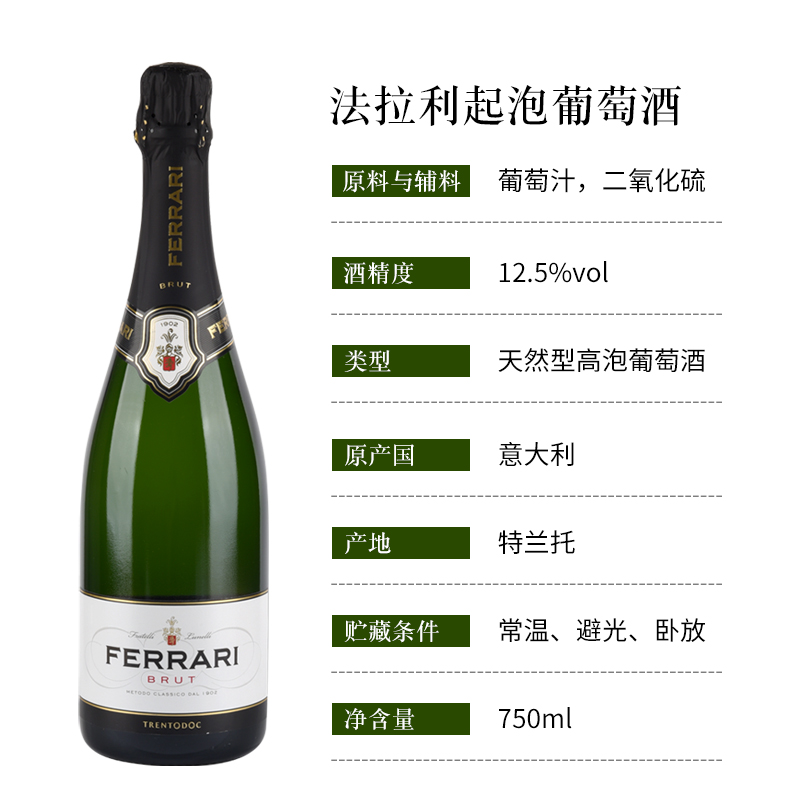 法拉利起泡葡萄酒 Ferrari Brut意大利原瓶进口天然型高泡汽泡酒