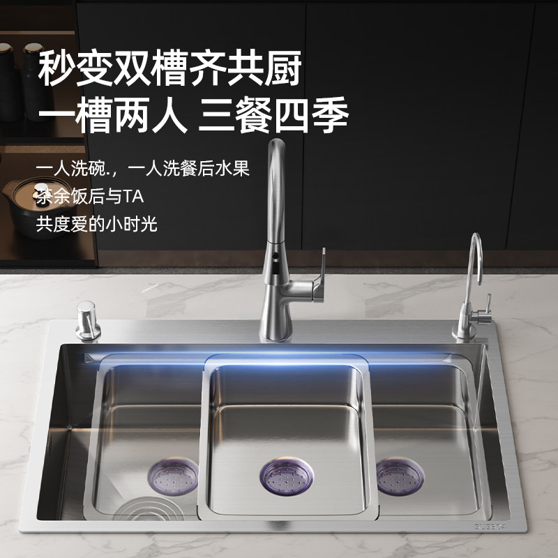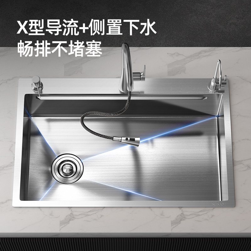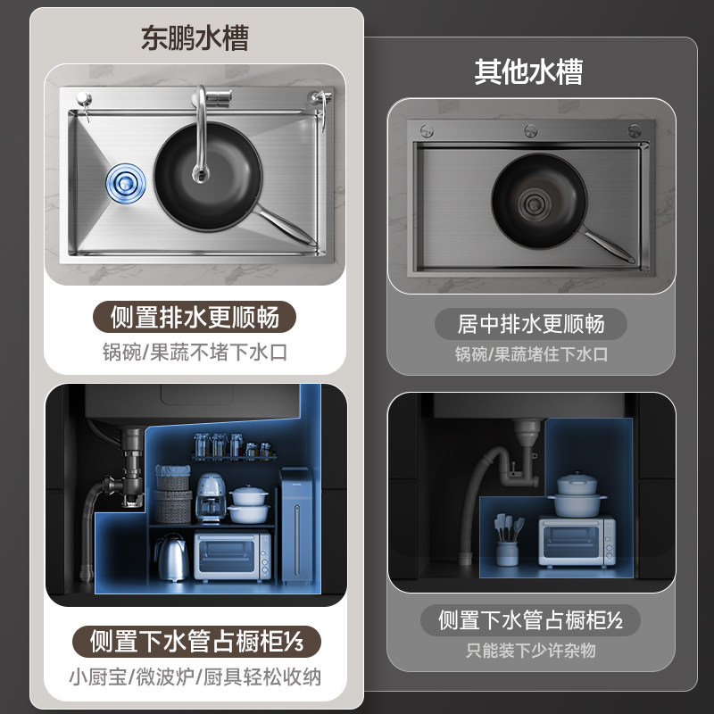 东鹏侧排304不锈钢水槽大单槽加厚洗菜盆厨房洗碗洗菜池台上台下