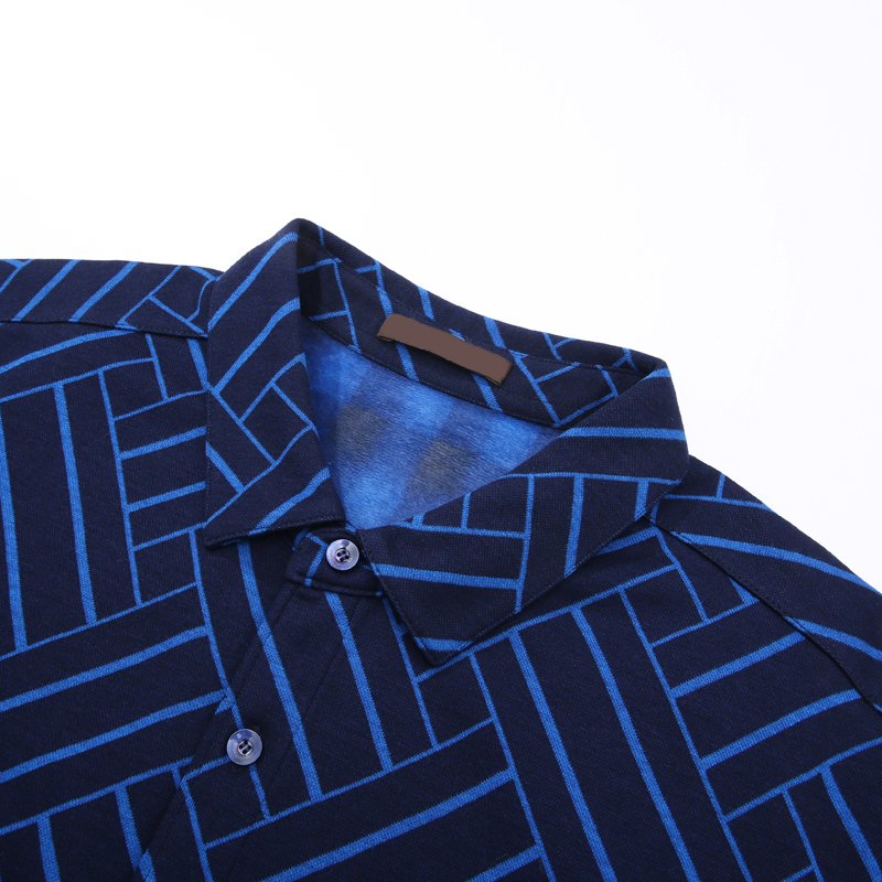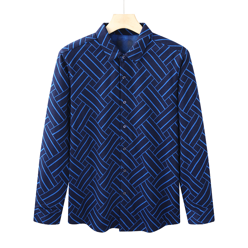 CA143卡换季断码清仓秋冬厚款男士加绒深蓝印花弹力舒适长袖衬衫