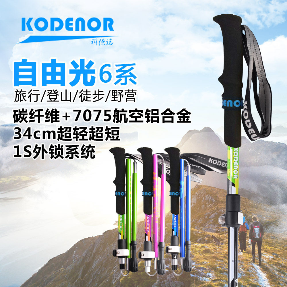 女士碳纤维铝合金超短折叠登山杖