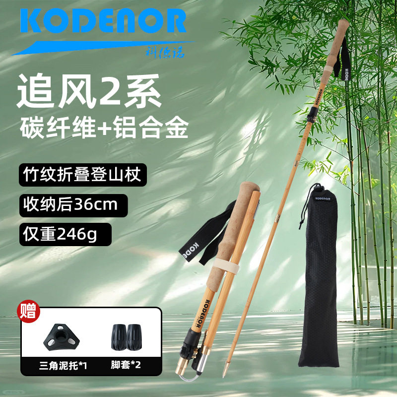 碳纤维登山杖女轻量便携折叠5节碳合金超短款直握柄户外徒步手杖