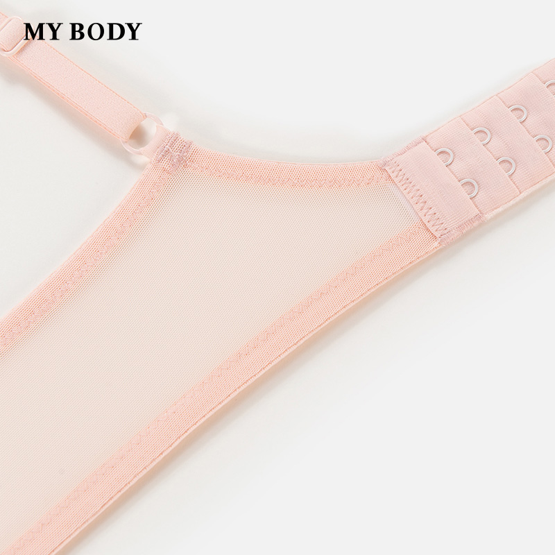 商场同款MYBODY内衣法式三角杯性感深v无钢圈大胸显小蕾丝文胸女