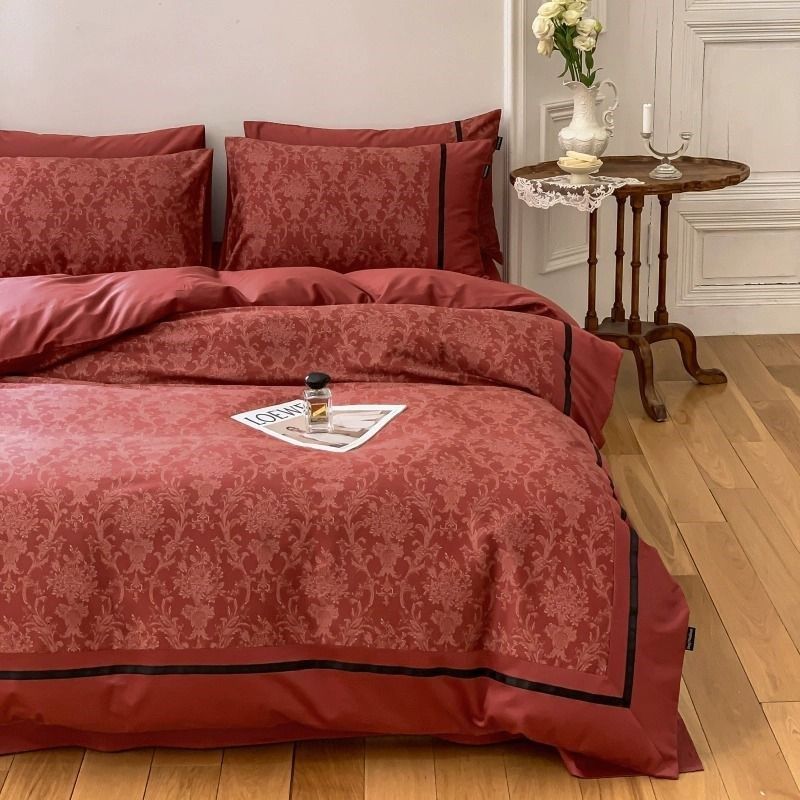 简约婚庆床品红色结婚240支长绒棉四件套新婚喜被1.8米床单