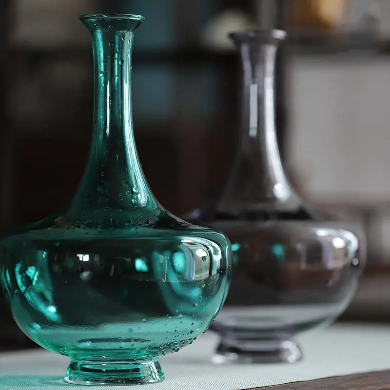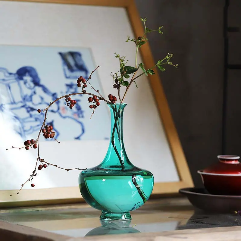 复古森系绿色玻璃花瓶美式祖母绿富贵竹插花高级感样板间客厅装饰