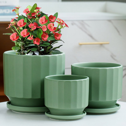 北欧出口白色亚光花盆陶瓷简约风格创意绿萝特大号带托盘清仓包邮