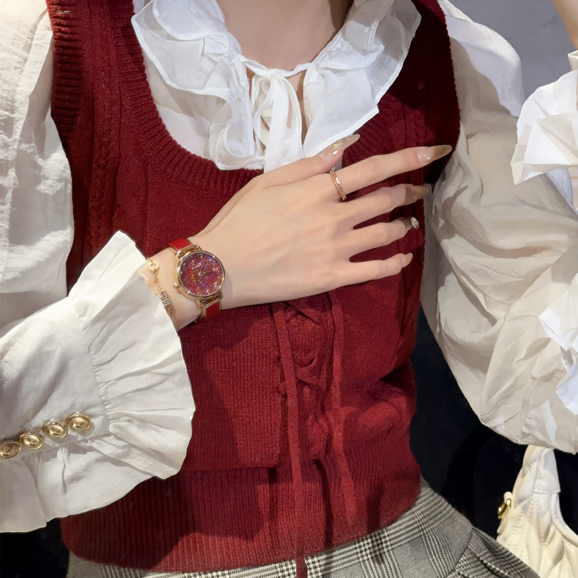 金米欧安可拉红手表女满天星手链表轻奢小众半手镯式2025新款女表