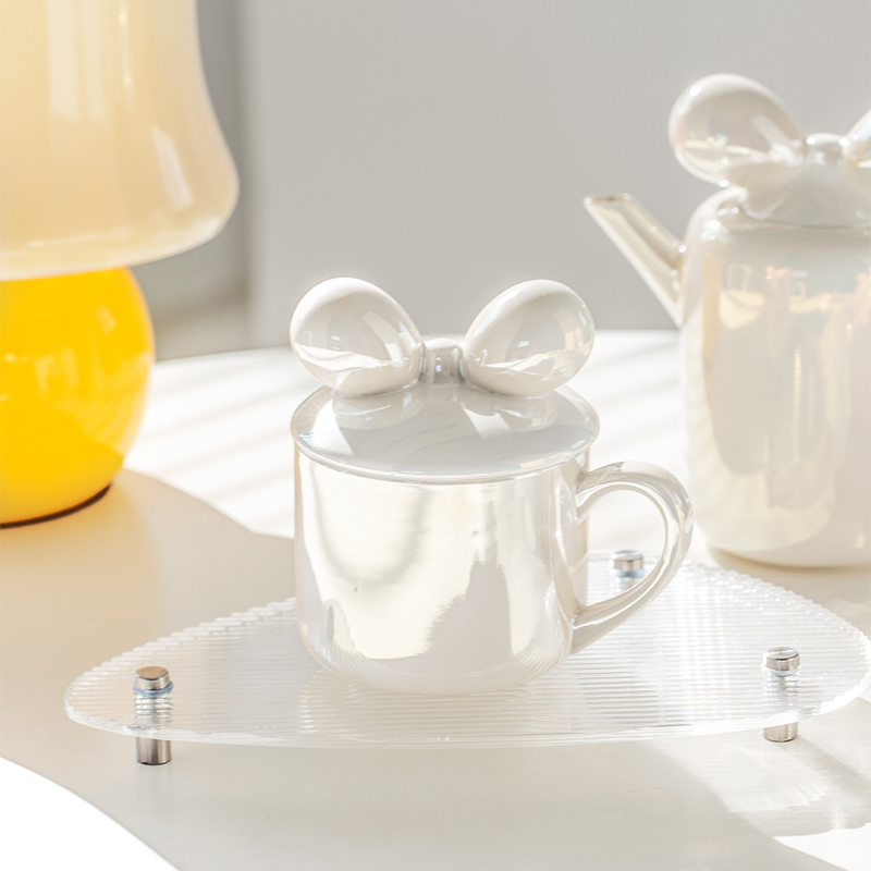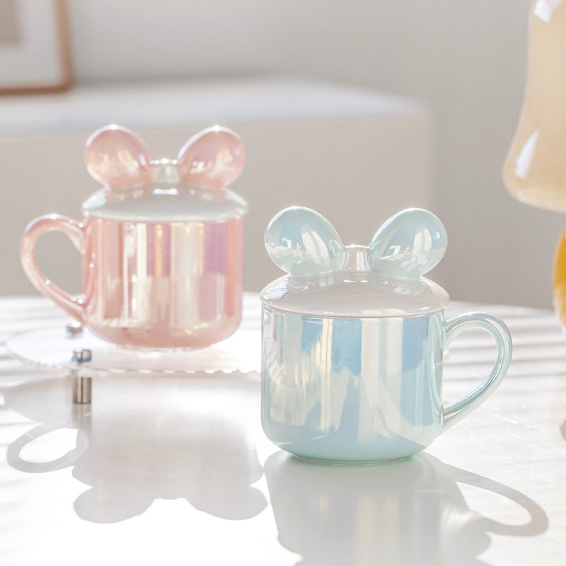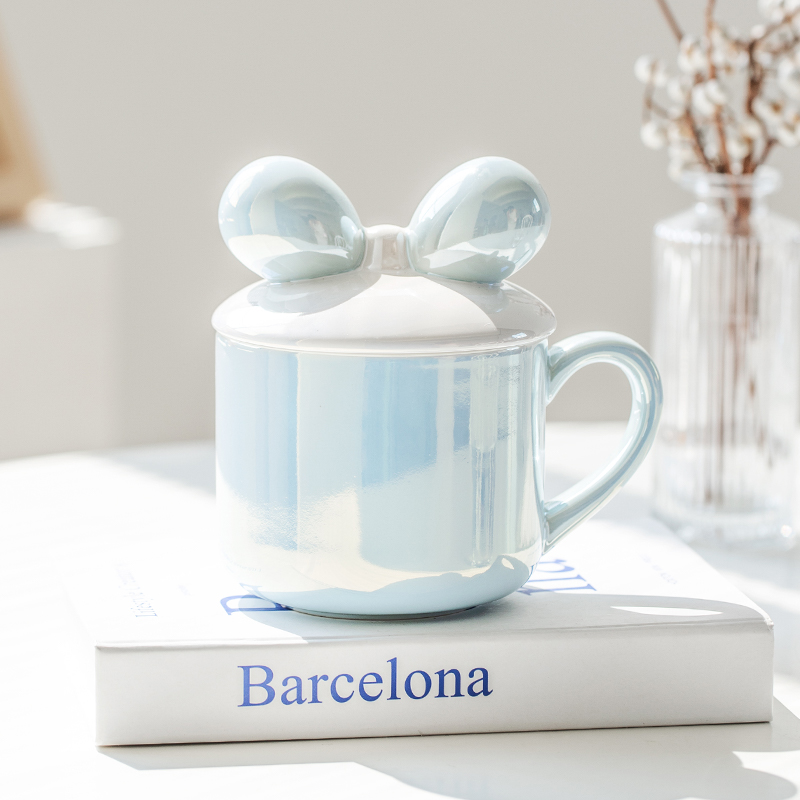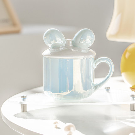 蝴蝶结陶瓷杯子带盖可爱设计小众