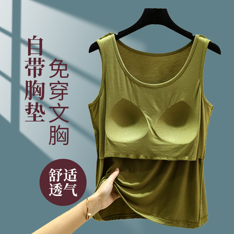 带胸垫莫代尔无袖t恤女夏免穿文胸背心薄款外穿宽松打底吊带上衣