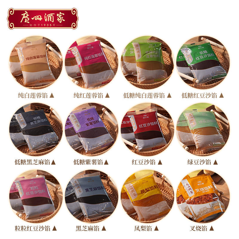 广州酒家月饼烘焙馅料低糖纯白莲蓉红豆沙黑芝麻白桃乌龙龙井馅泥