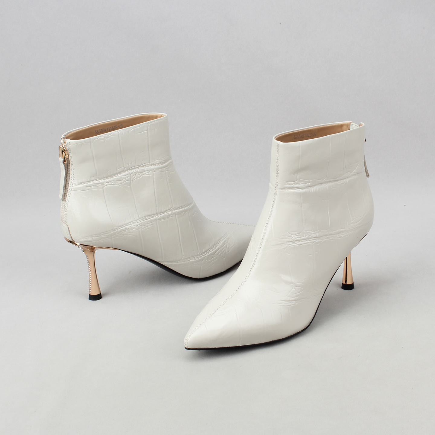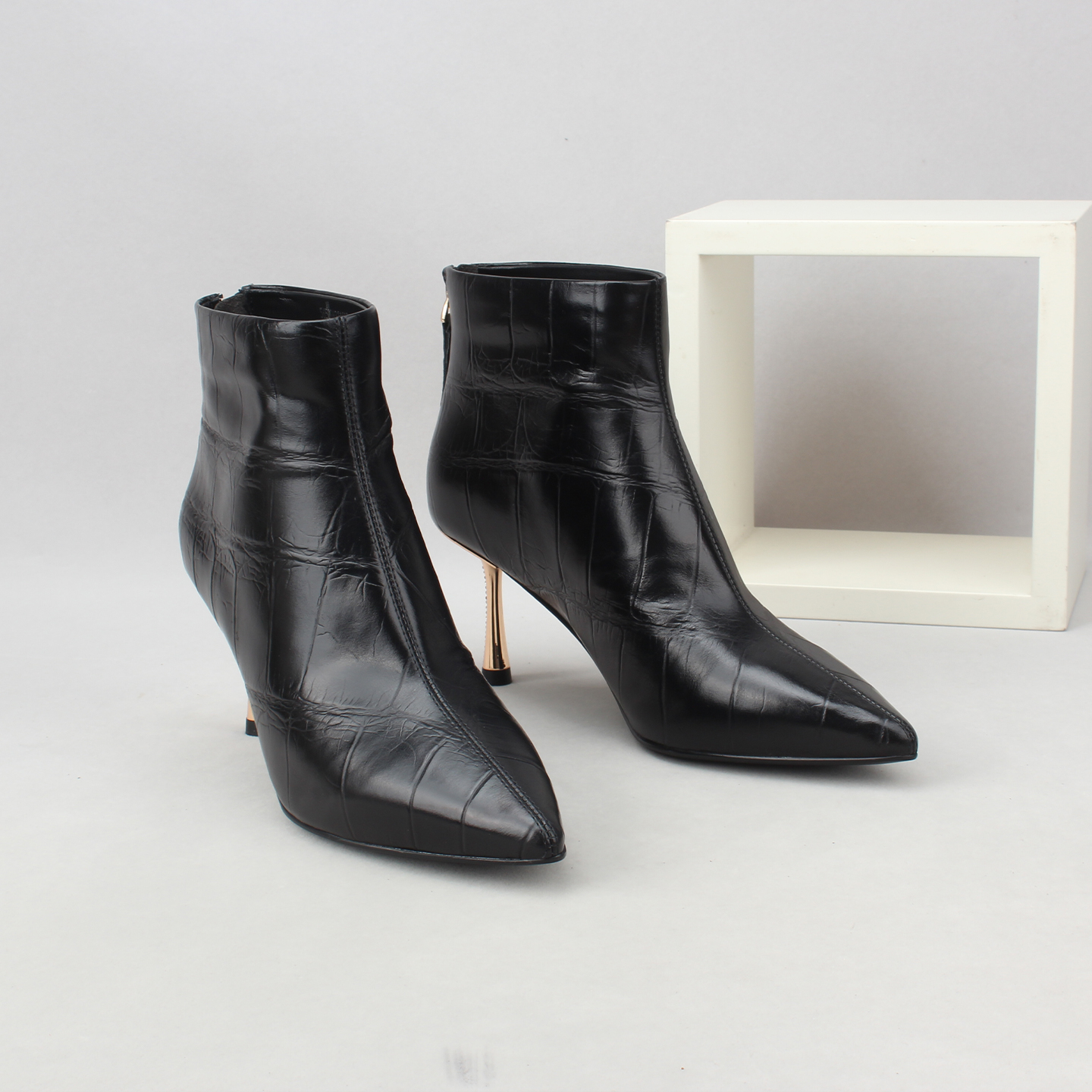 意尔康女靴2025冬季新款时尚百搭尖头细跟短靴女高跟鞋加绒31162B