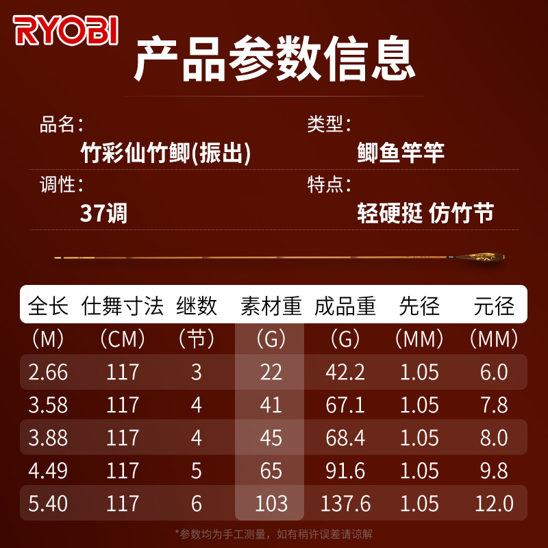 利优比竹彩仙竹 振出式鲫鱼竿超细超轻超硬手竿37调鲫鱼 台钓鱼竿