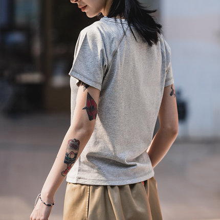 马登夏美式纯色基础纯棉圆领短袖灰色正肩显瘦运动修身打底t恤女