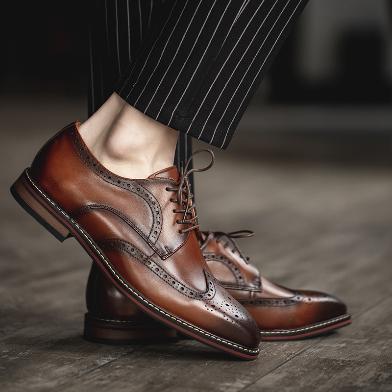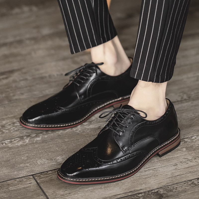 布洛克雕花皮鞋男士正装商务英伦风德比真皮透气大码结婚新郎男鞋
