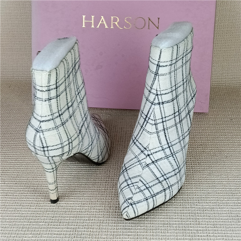 哈森正品撤柜断码处理女靴法式小香风尖头短靴秋冬款细高跟马丁靴