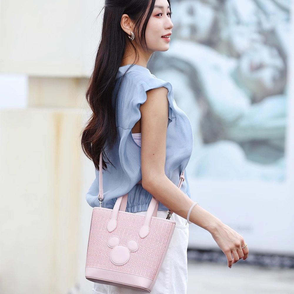 Disney迪士尼米奇联名编织简约休闲水桶包托特包潮流时尚新款女包