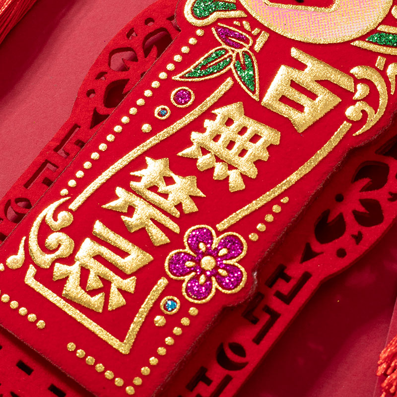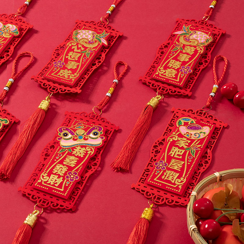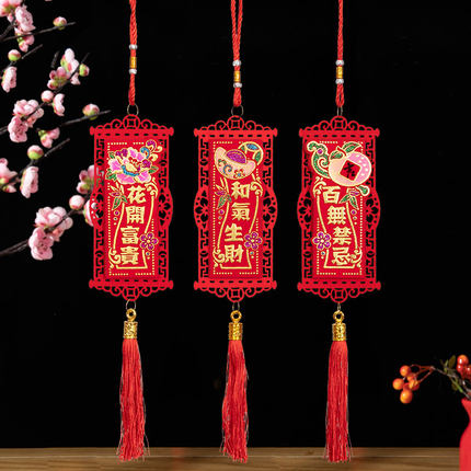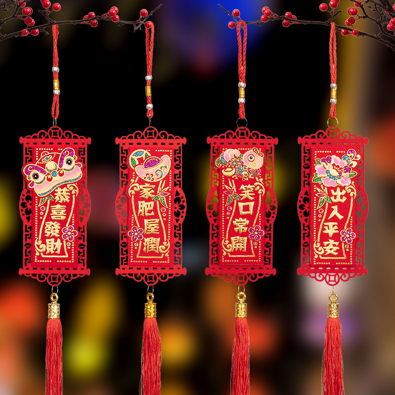 过年小挂饰元旦春节装饰布置2026马年四字挥春双面新年门把手挂件