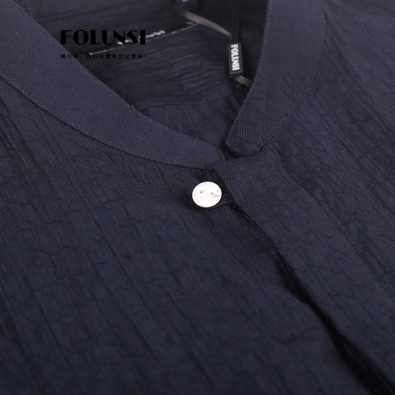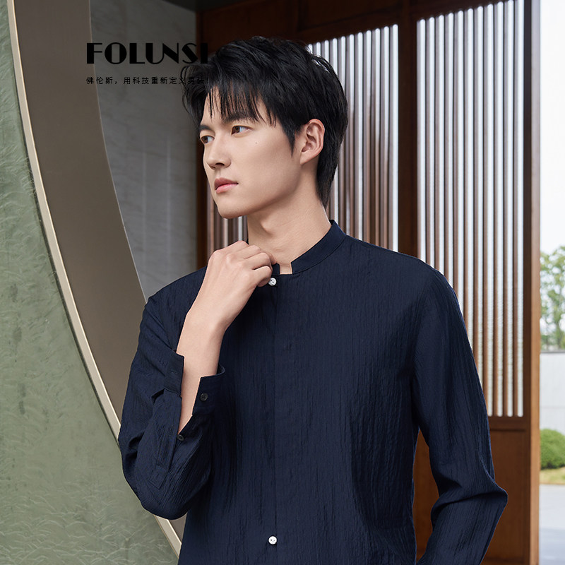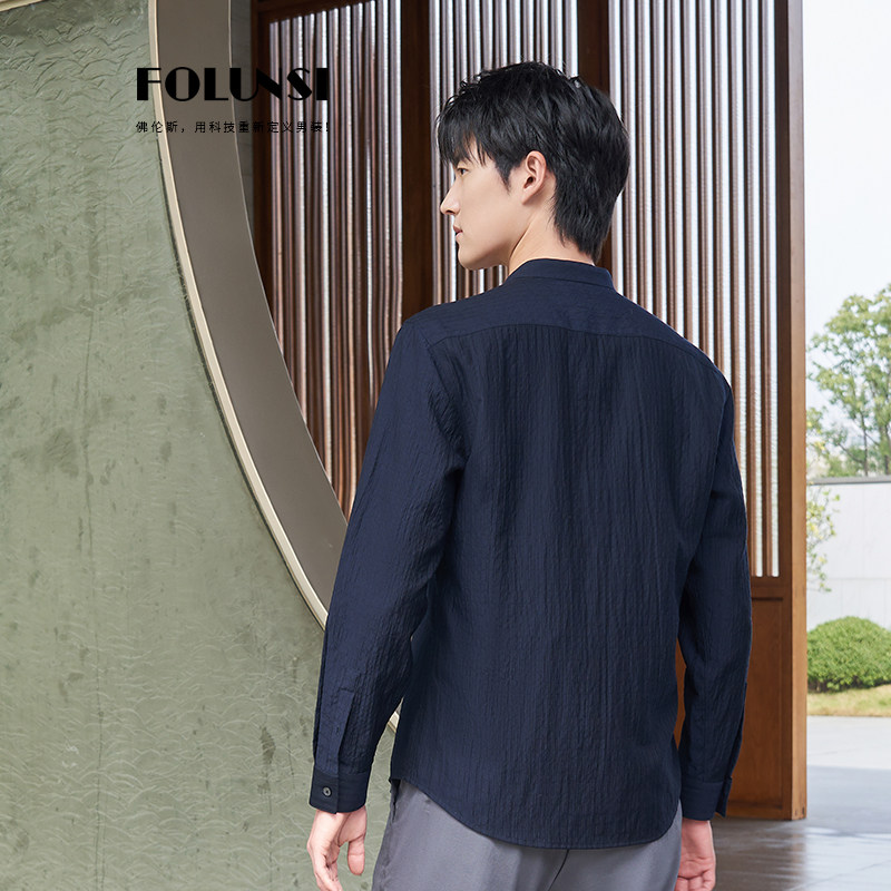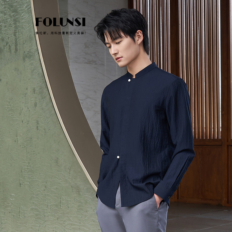 佛伦斯folunsi新款2024男衬衣春秋款休闲立领莫代尔时尚长袖衬衫