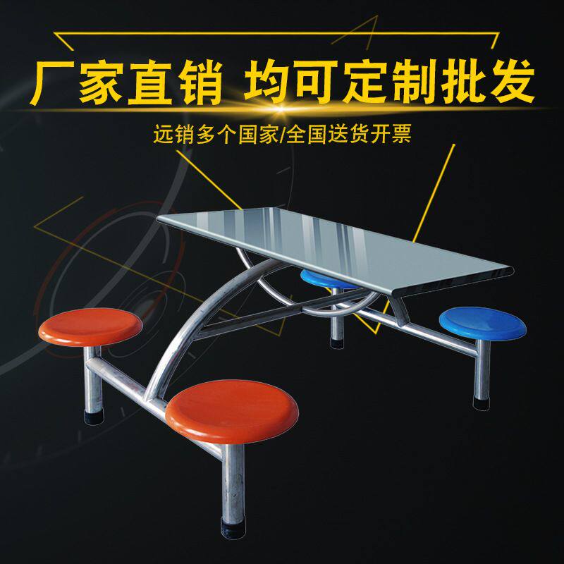 304不锈钢餐桌椅学校食堂餐桌椅组合201不锈钢快餐店连体桌椅