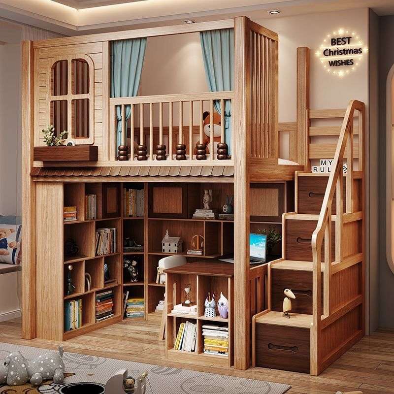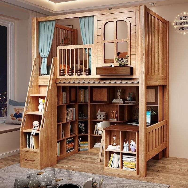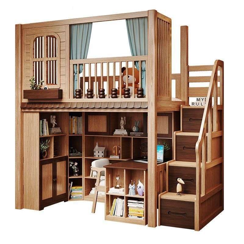 上床下桌组合床家用成人高架床纯实木儿童床书桌书柜一体式男孩