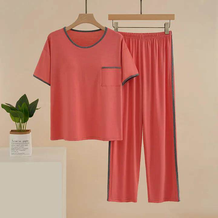 带胸垫睡衣女春夏季莫代尔两件套
