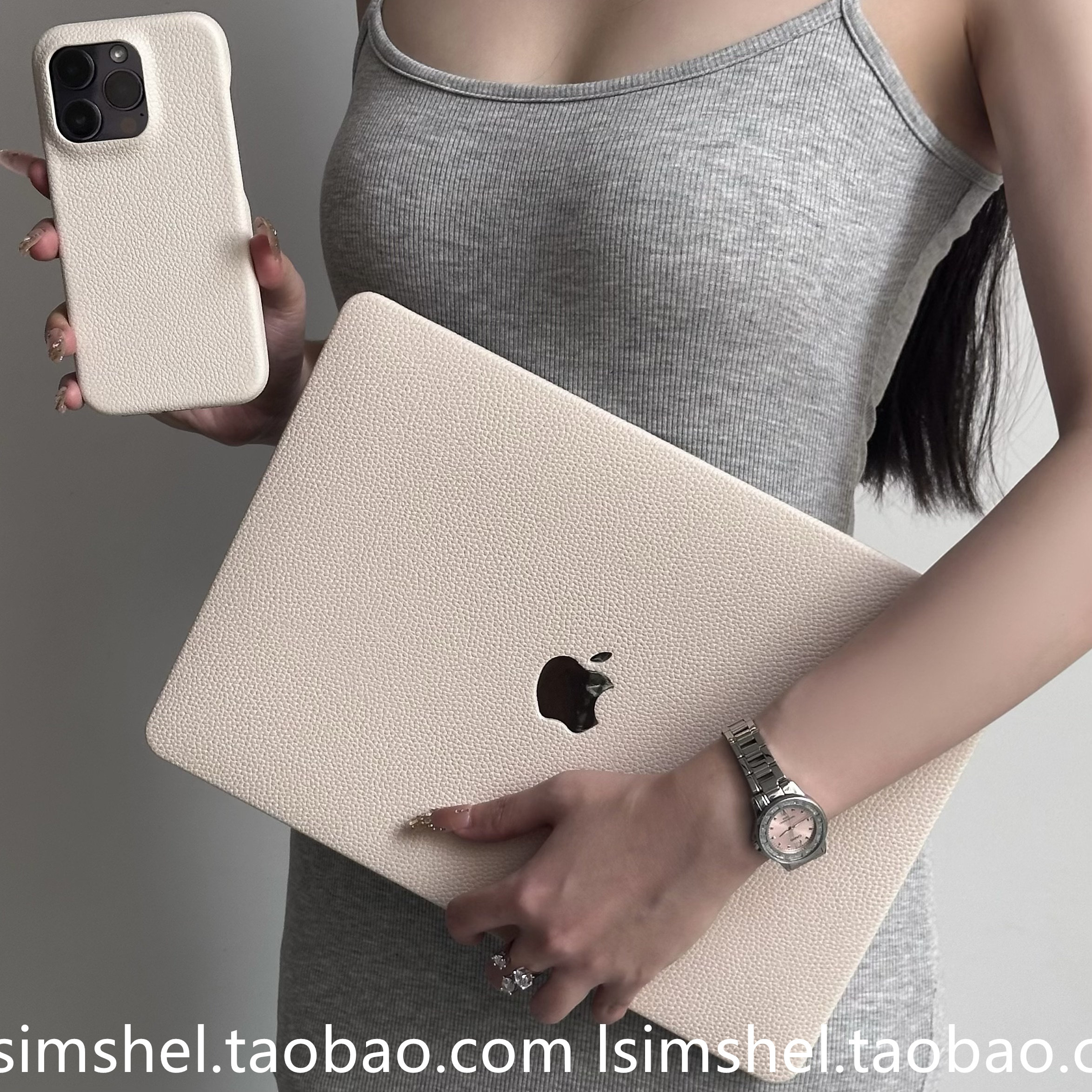 皮革荔枝纹香杏仁笔记本电脑壳套