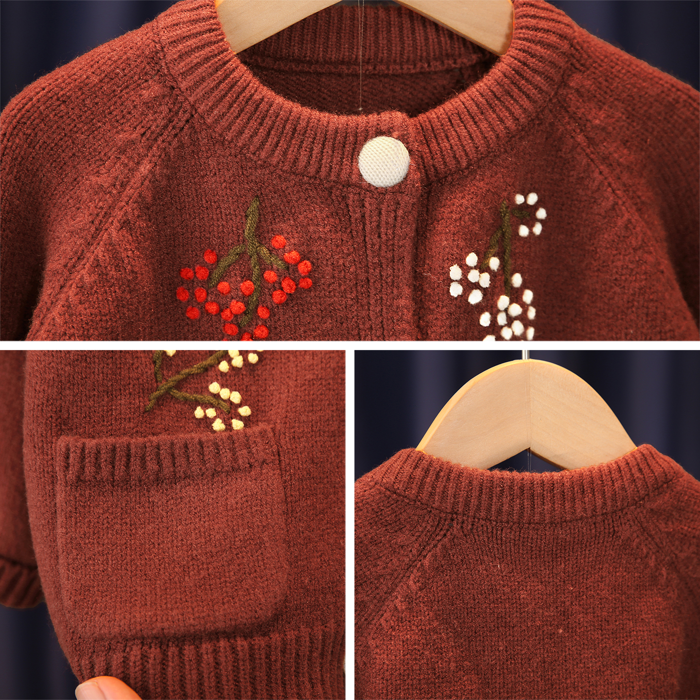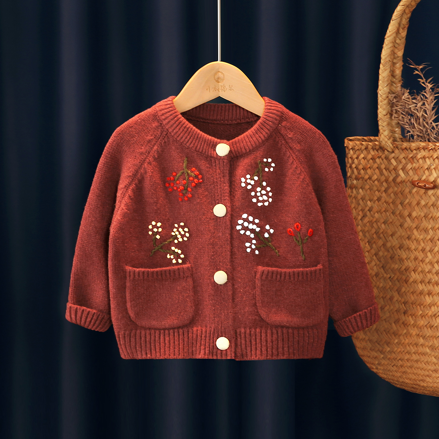 女童外套秋冬季加厚新款小女孩好看针织开衫儿童毛衣宝宝红色上衣