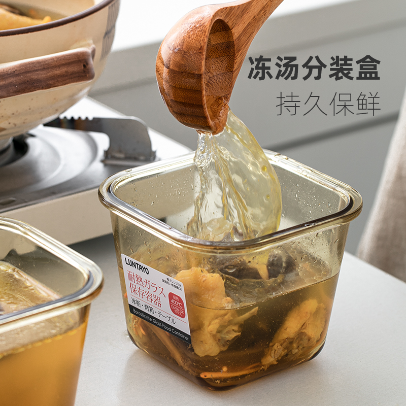 冻汤盒日本luntayo食品级高汤冷冻储存盒冰箱收纳分装玻璃保鲜盒