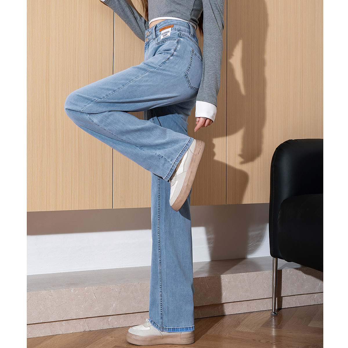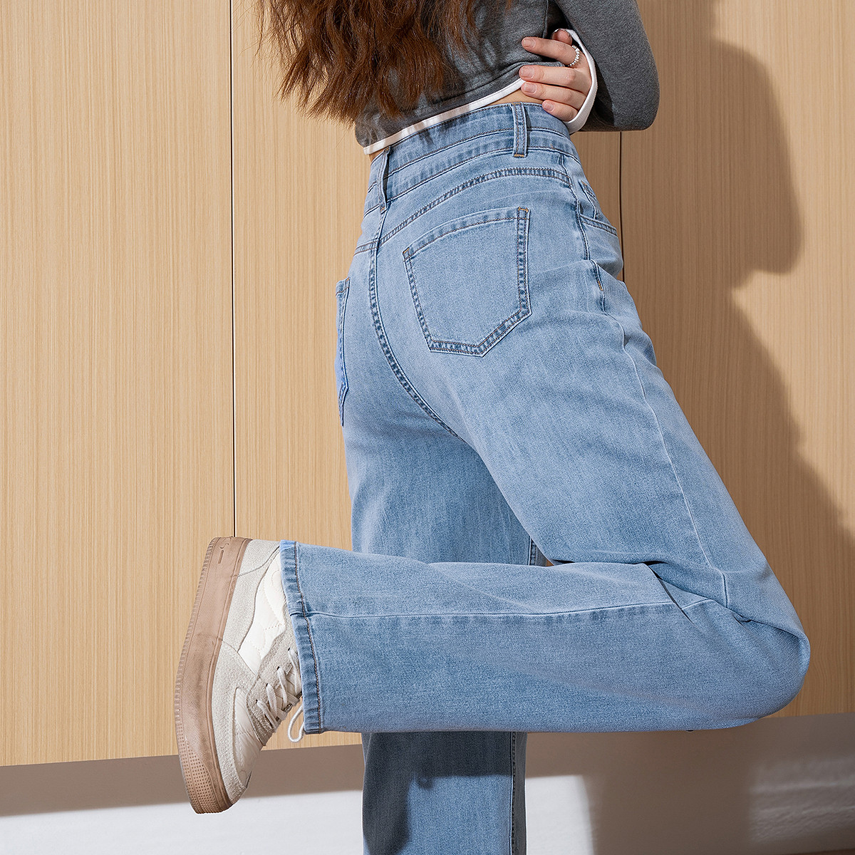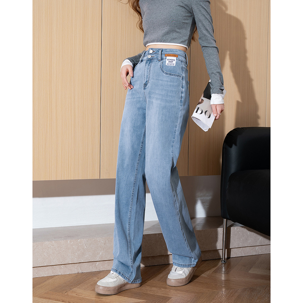 唐狮春夏季新款牛仔裤女高腰冰丝垂感薄款直筒裤宽松显瘦阔腿裤