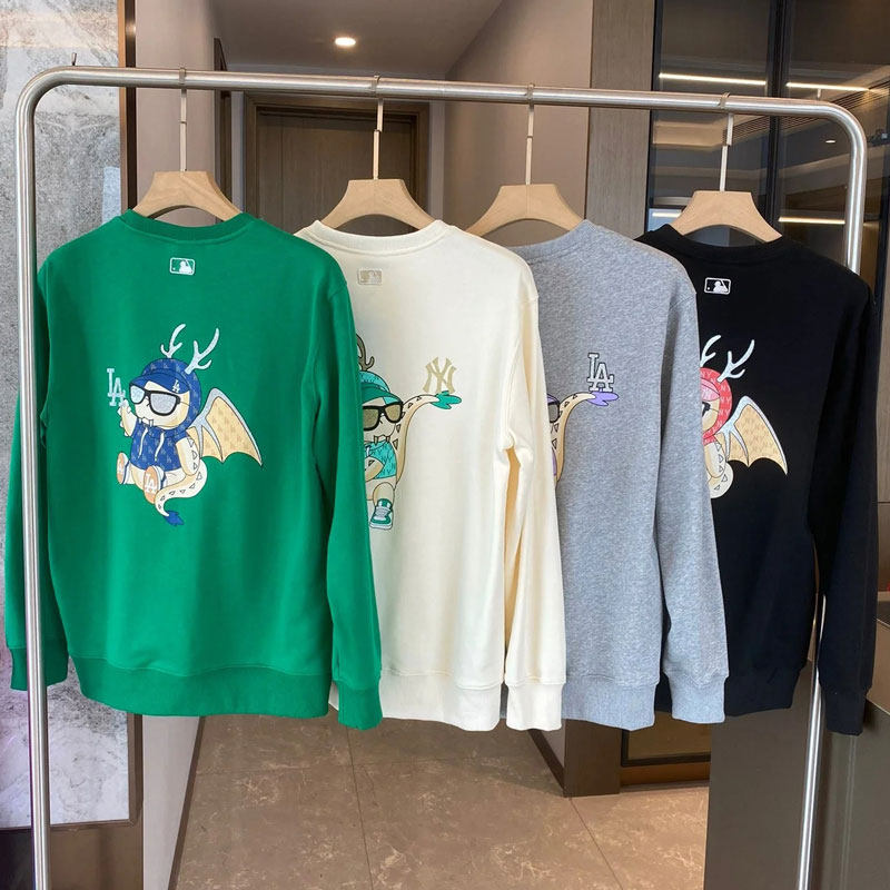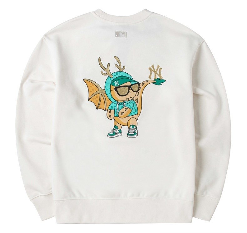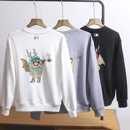 MLB男女卫衣秋冬款NY卡通龙年情侣圆领休闲上衣套头衫3AMTQ0141