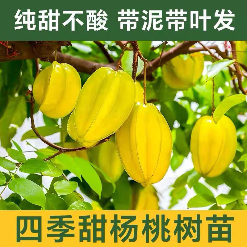 四季甜杨桃树果苗杨梅阳桃黄桃树树苗甜盆栽南方北方种植名贵果树