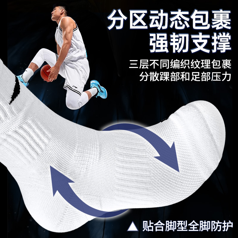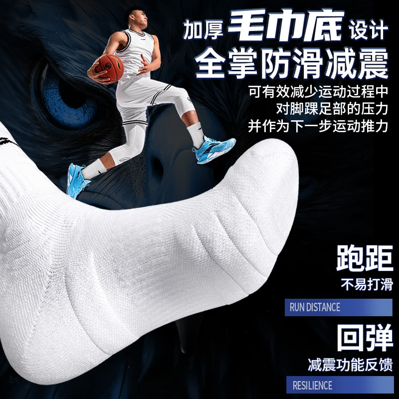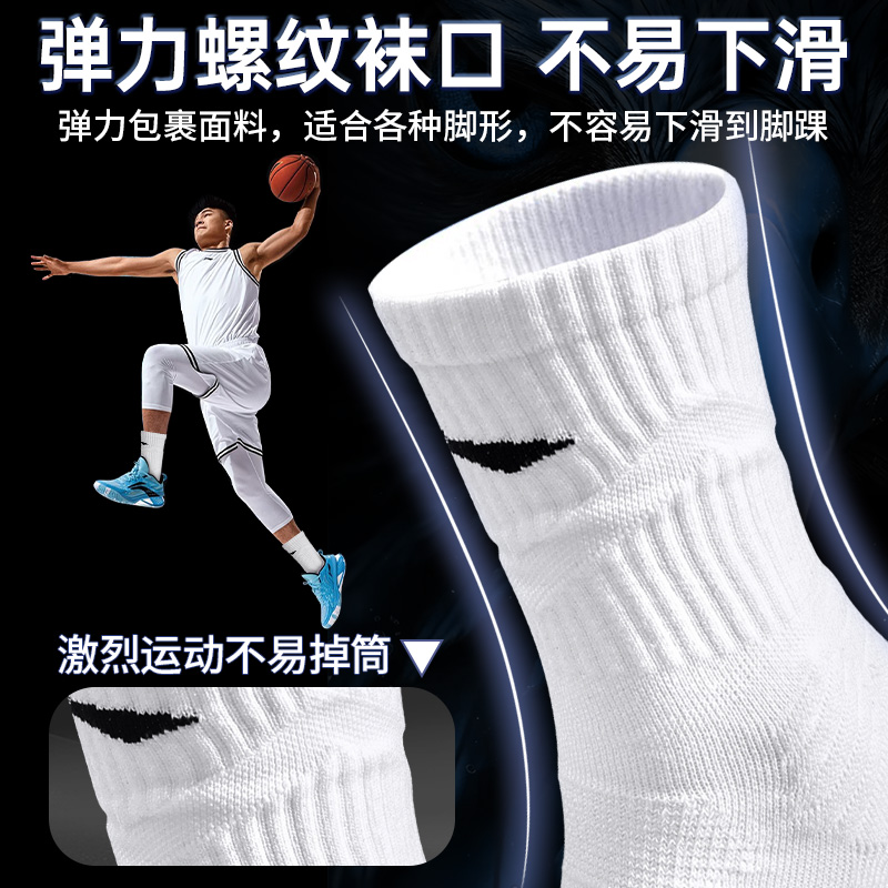 李宁专业篮球袜子男款中筒美式跑步防滑实战毛巾底加厚精英运动袜