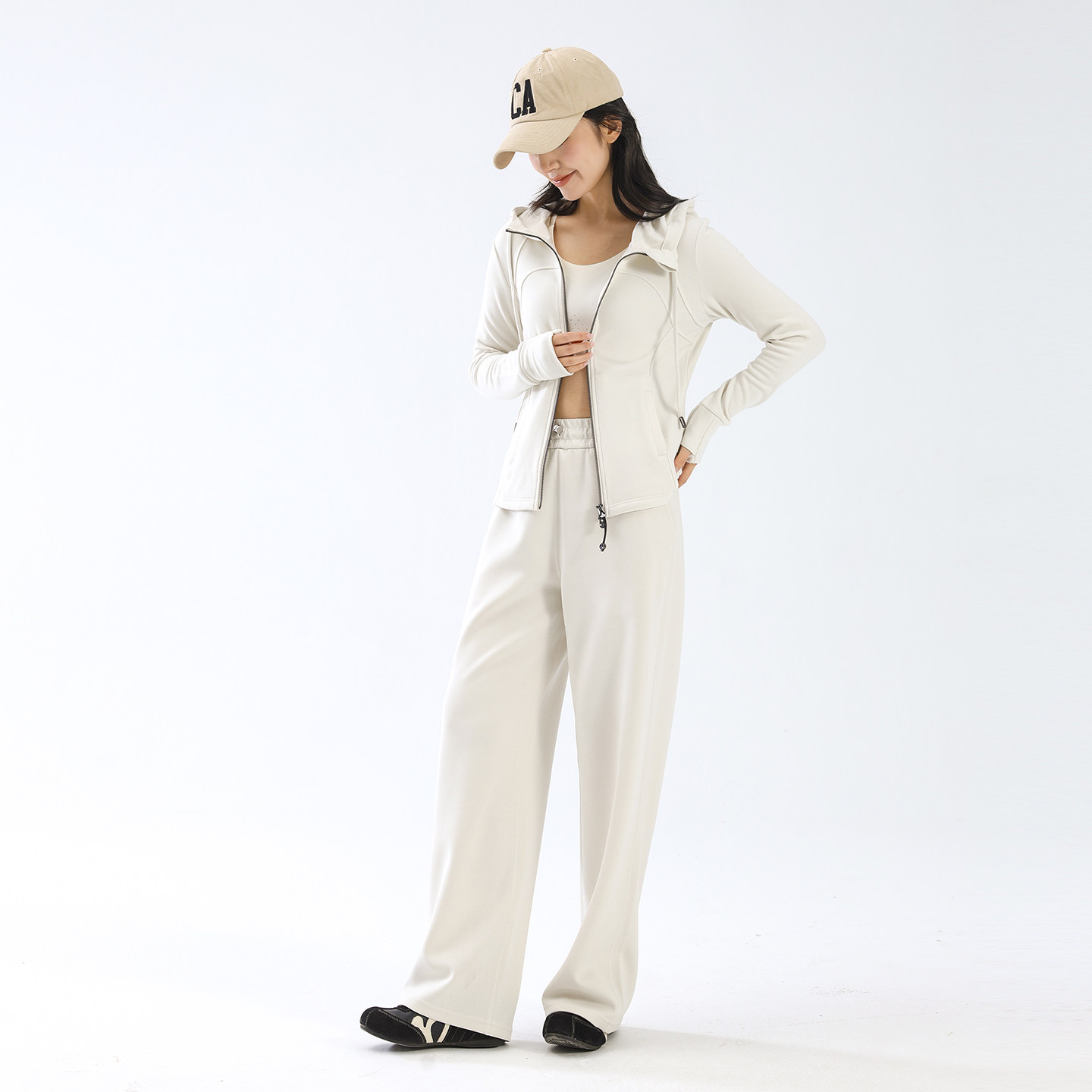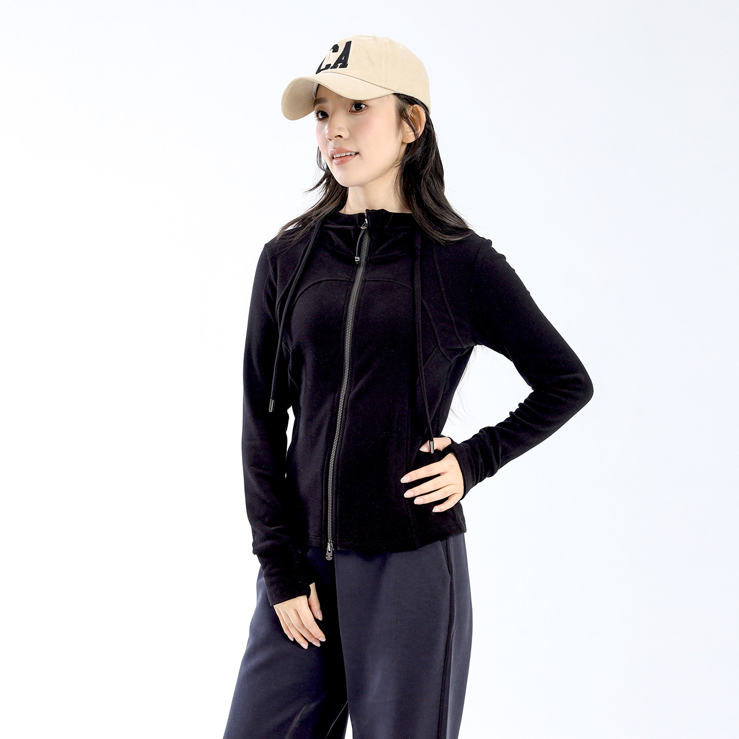 JUACTIVE双面德绒运动连帽拉链短外套女秋冬修身显瘦开衫卫衣女