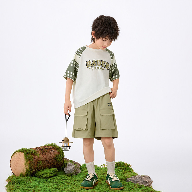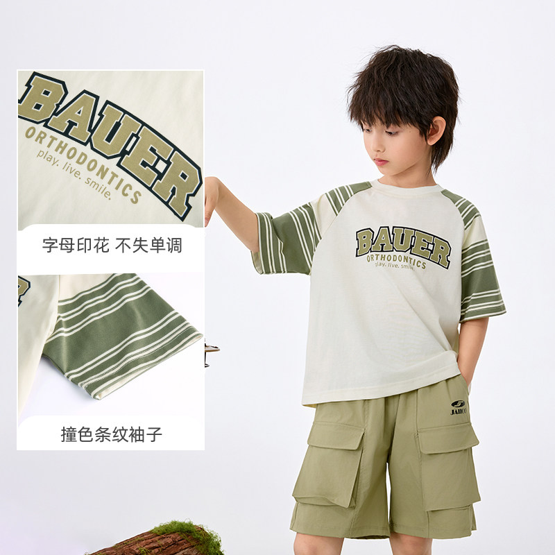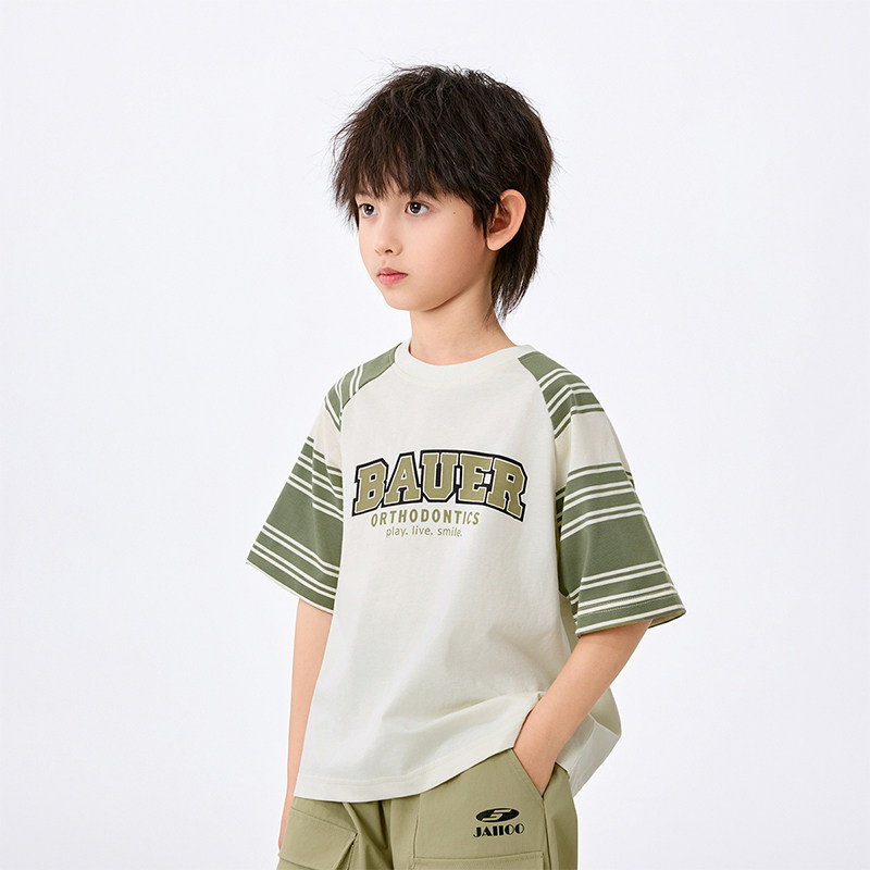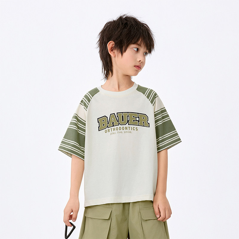 茵曼男童短袖t恤纯棉透气时尚字母印花2025夏季帅气男孩宽松上衣