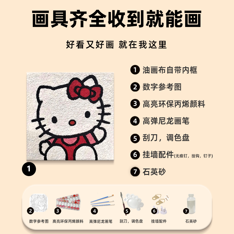 HelloKitty肌理画石英砂diy手工绘全套材料包凯蒂猫装饰数字油画