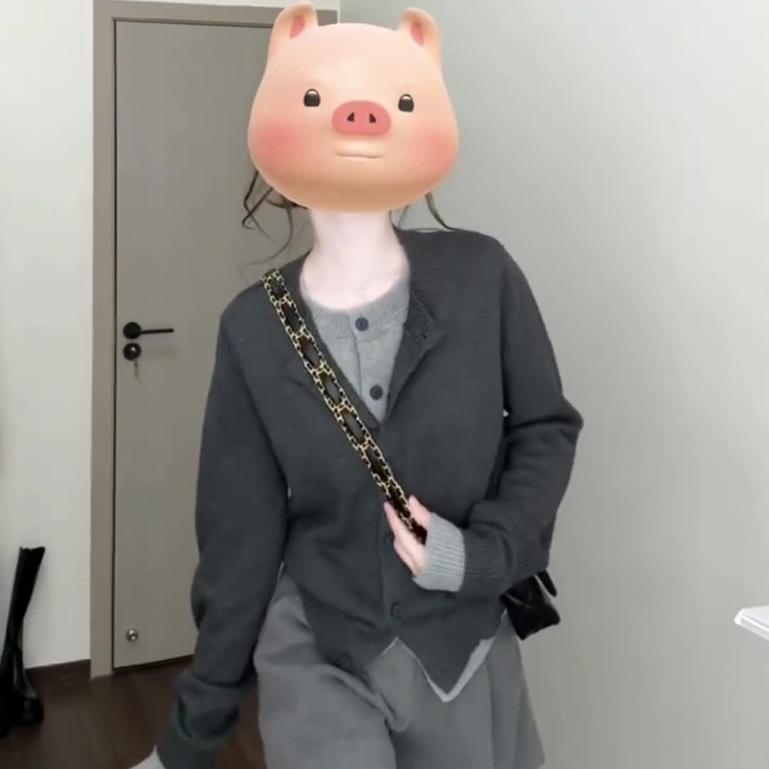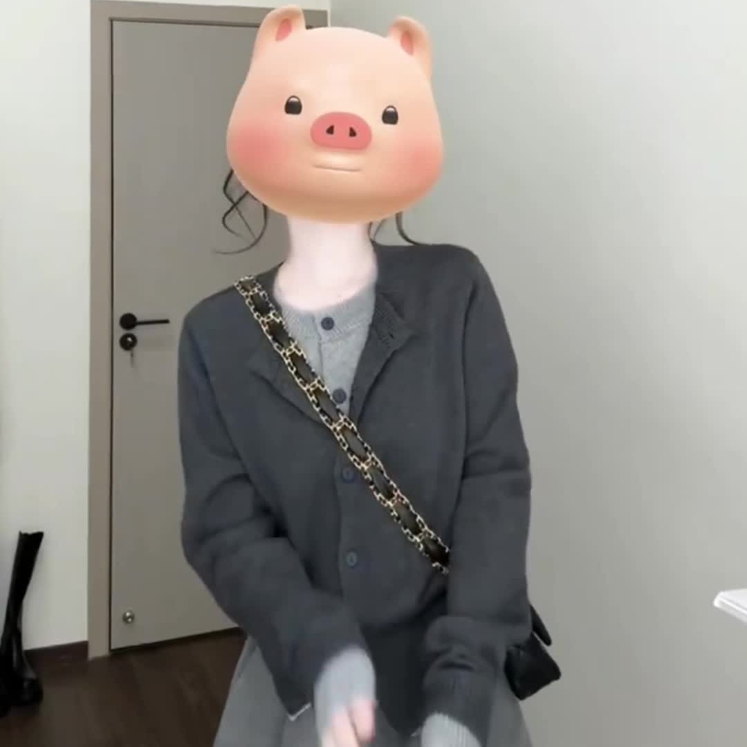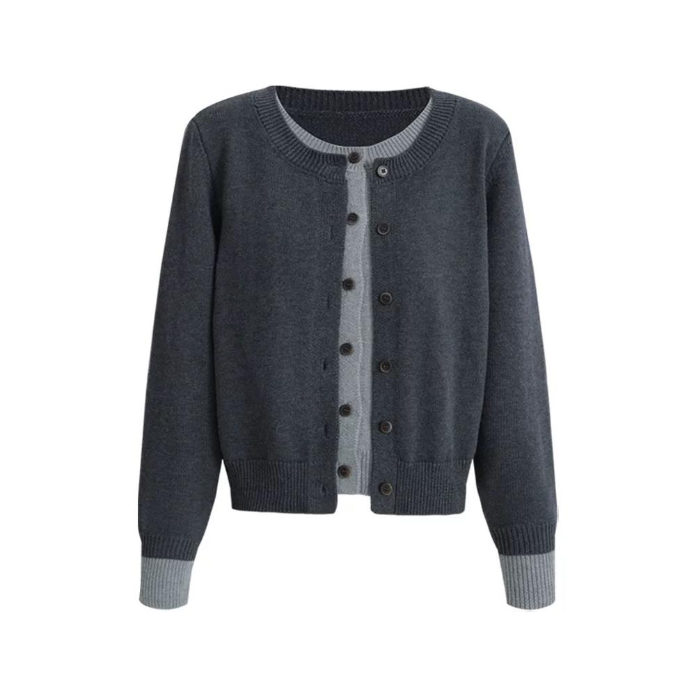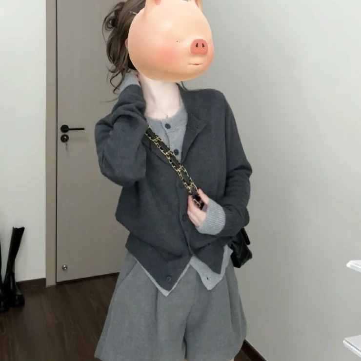 秋冬辣妈款外出哺乳灰色假两件针织毛衣开衫外套显瘦产后喂奶上衣