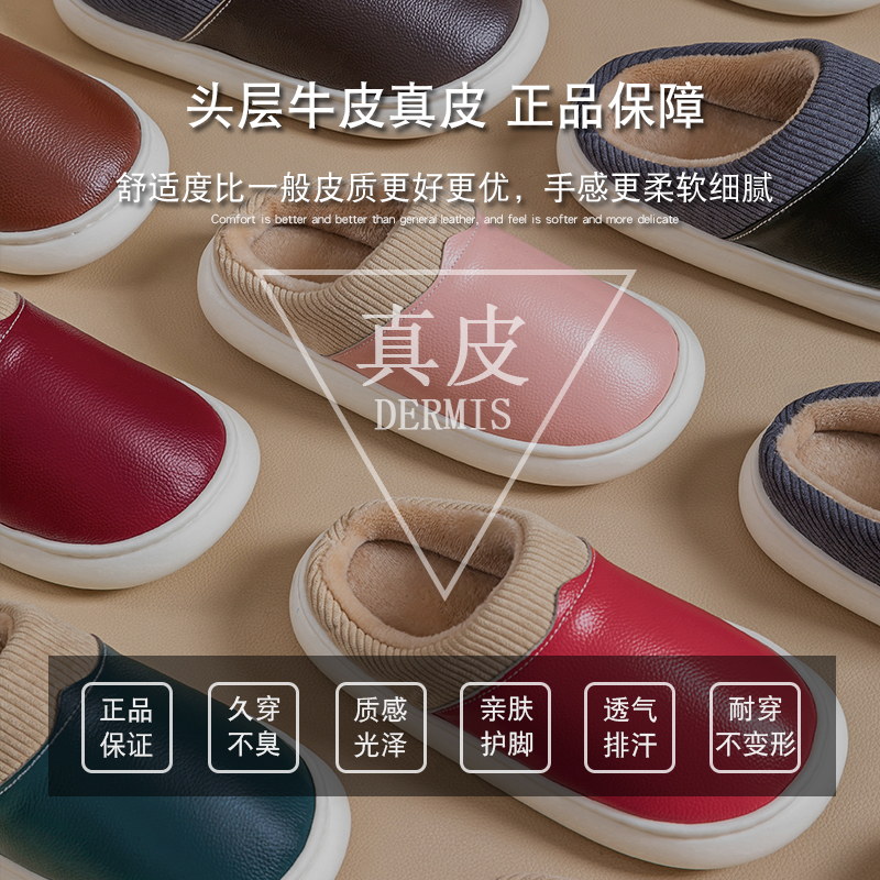 真皮拖鞋男女情侣冬季室内家用防滑纯牛皮家居保暖防水厚底棉拖鞋