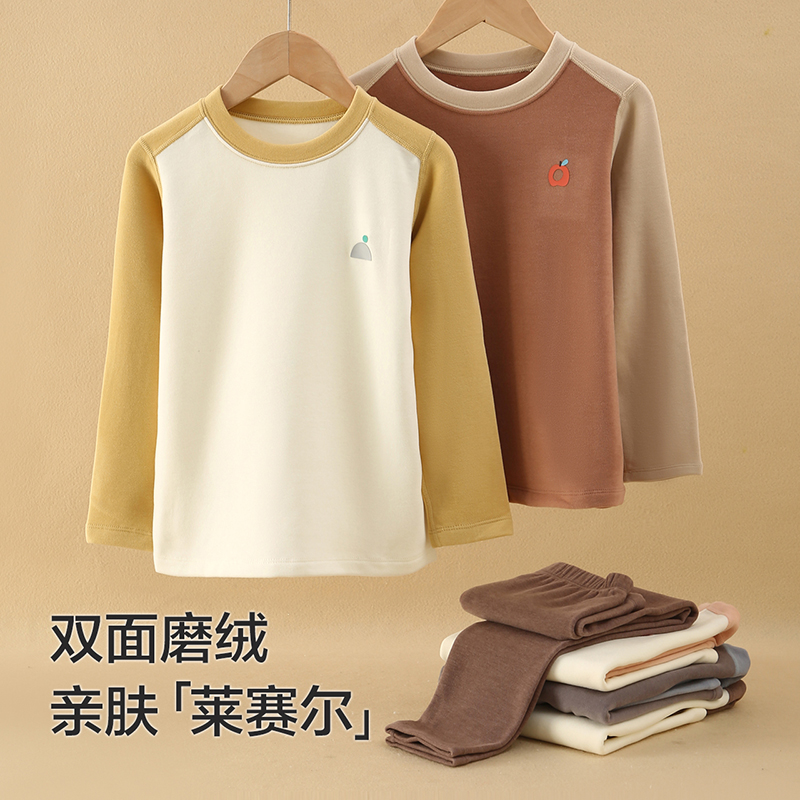 儿童秋衣秋裤女童保暖内衣套装秋冬款自发热棉毛衫拼色亲子家居服