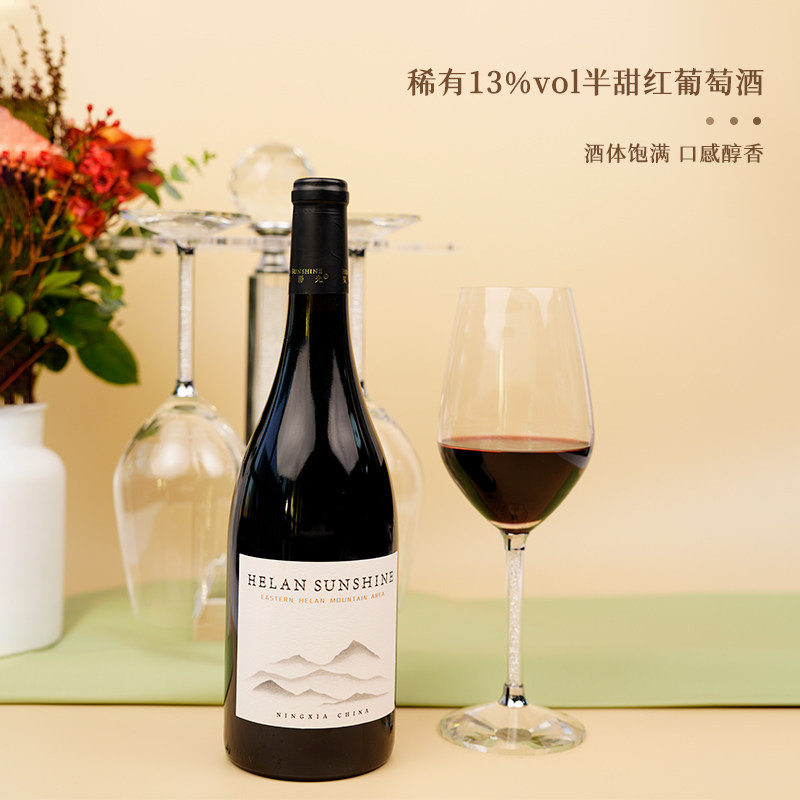 柏阁【贺兰阳光】精选半甜型红葡萄酒 清爽细腻日常 13%VOL葡萄酒