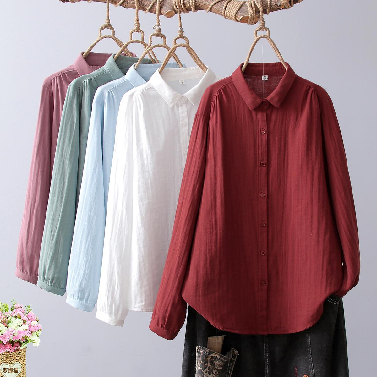 纯棉双层棉纱长袖衬衫女基础款 文艺小尖领柔软亲肤婴儿棉上衣