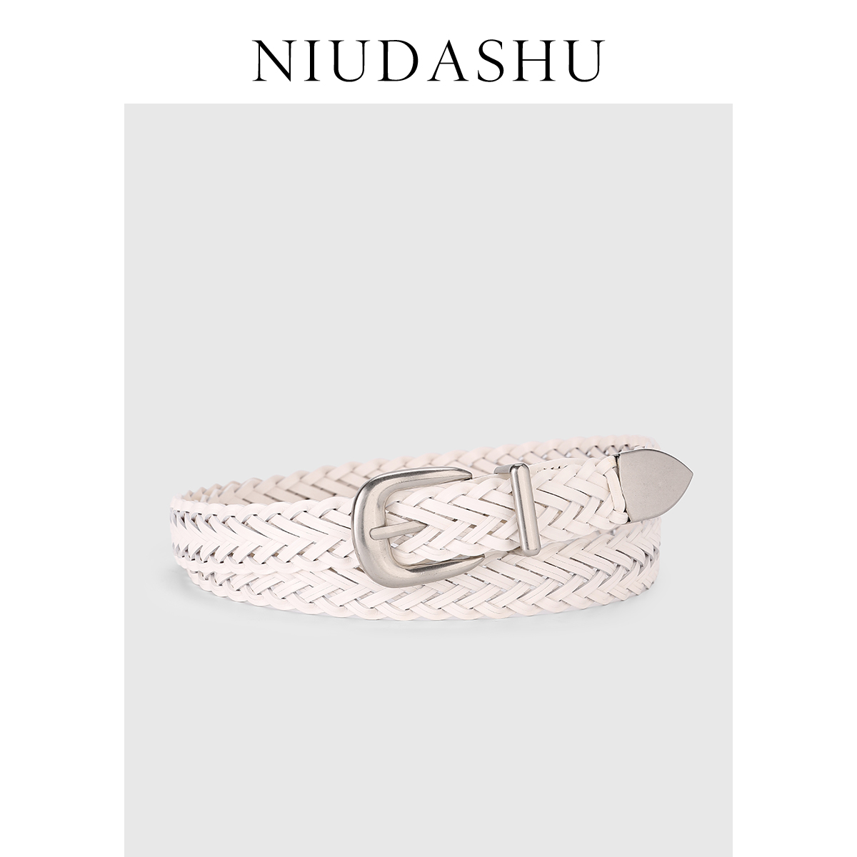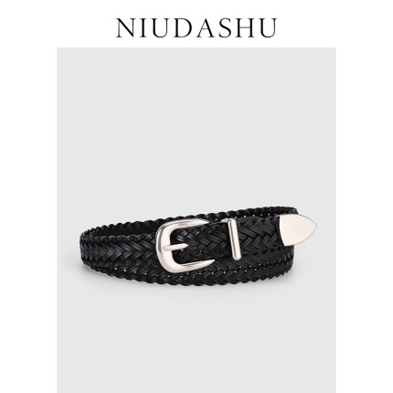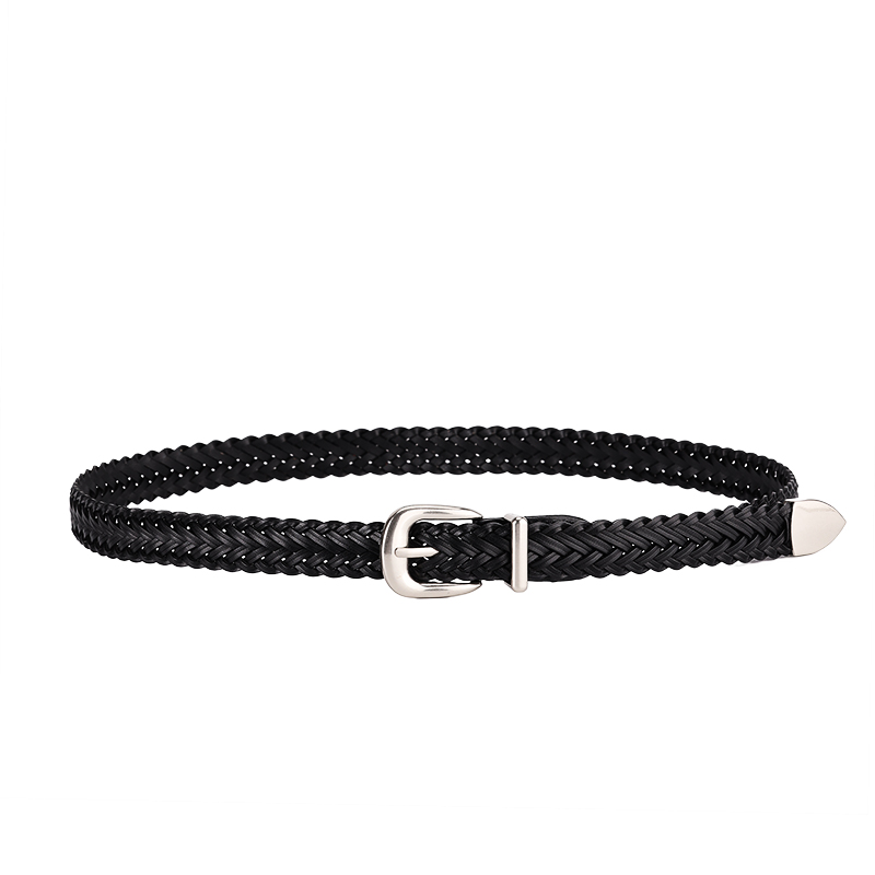 皮带女真皮装饰简约百搭韩版小众时髦编织免打孔配牛仔裤腰带男黑