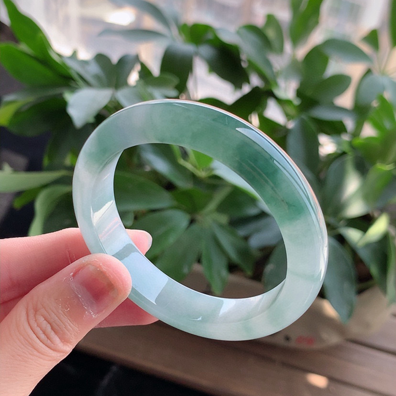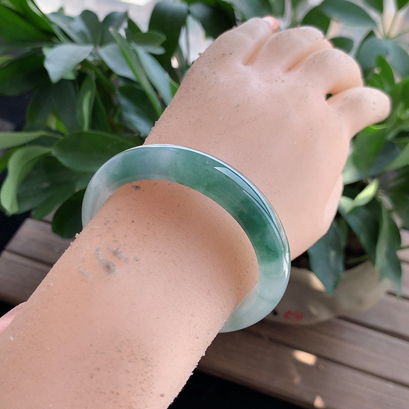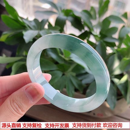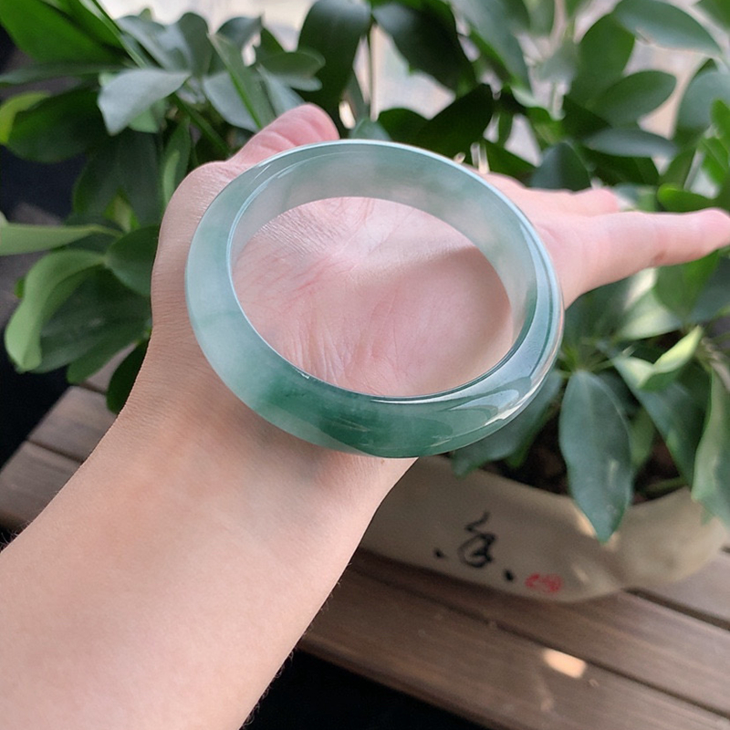 缅甸A货天然翡翠 老坑冰种飘花正装正圈手镯53-54圈口