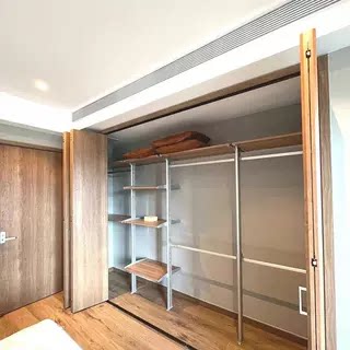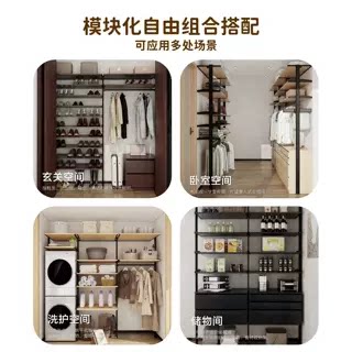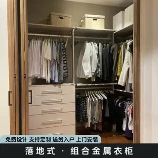 日式开放式金属衣柜小户型租房铝合金立柱落地衣架定制整体衣帽间