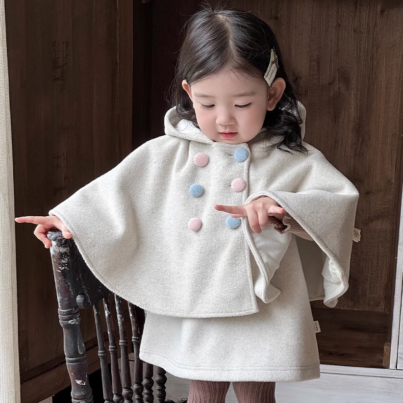 女童秋冬季新款套装婴儿加绒毛呢斗篷韩版背心裙两件套宝宝软披风