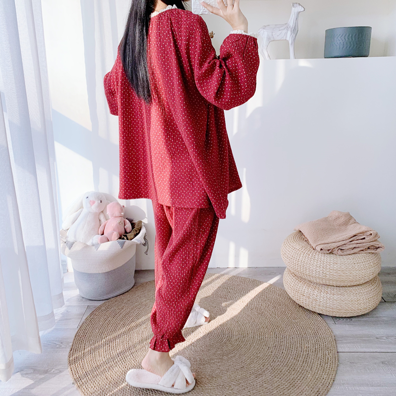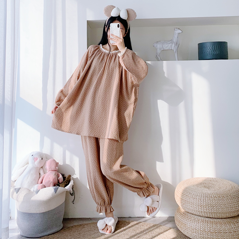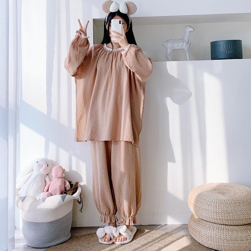 女纯棉双层纱花边家居服睡衣