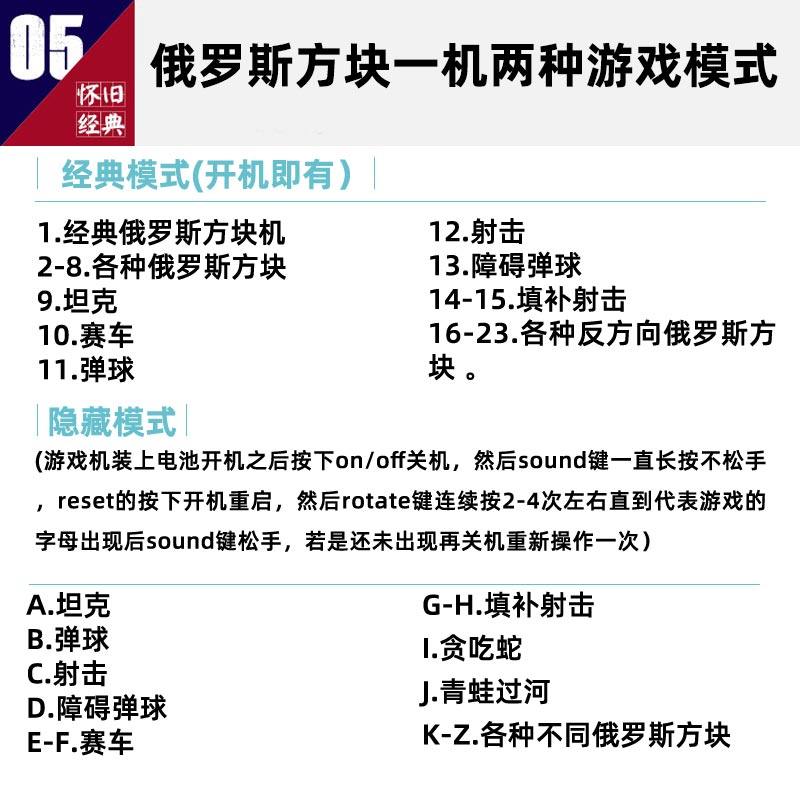 经典大屏蓝光俄罗斯方块游戏机掌机可充电怀旧款老式小型便携式掌上游戏机老人儿童智益玩具礼品