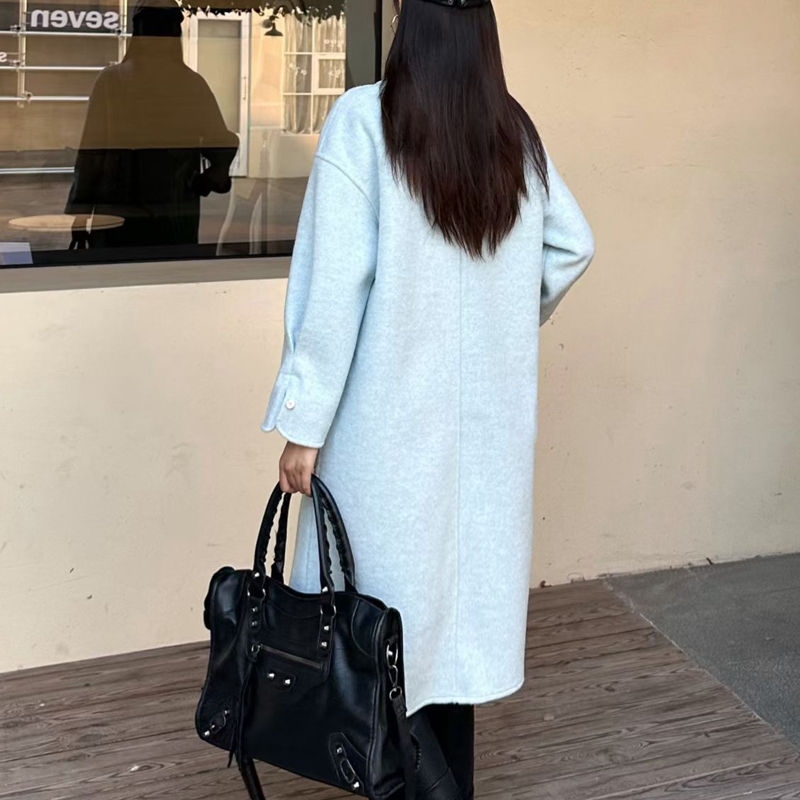 双面羊毛呢大衣女冬季中长款单排扣长袖2025年新款韩版呢子外套