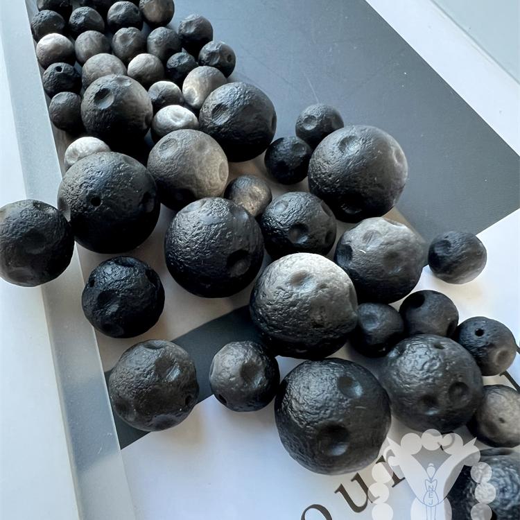 天然猫眼银沙黑曜石单颗珠雕刻陨石男女宇宙哑光diy配饰散珠ins潮