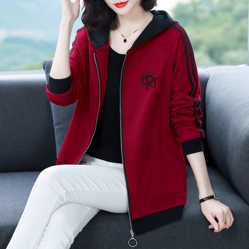 长袖拉链外套女装2025秋冬新款妈妈连帽上衣大码加绒加厚开衫卫衣