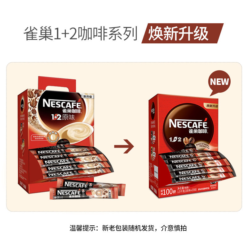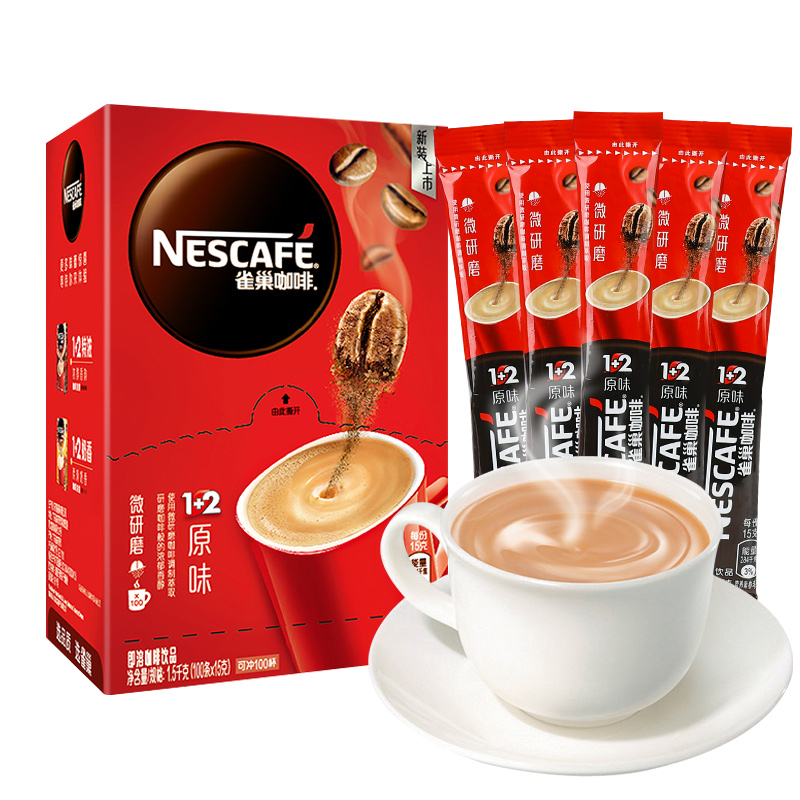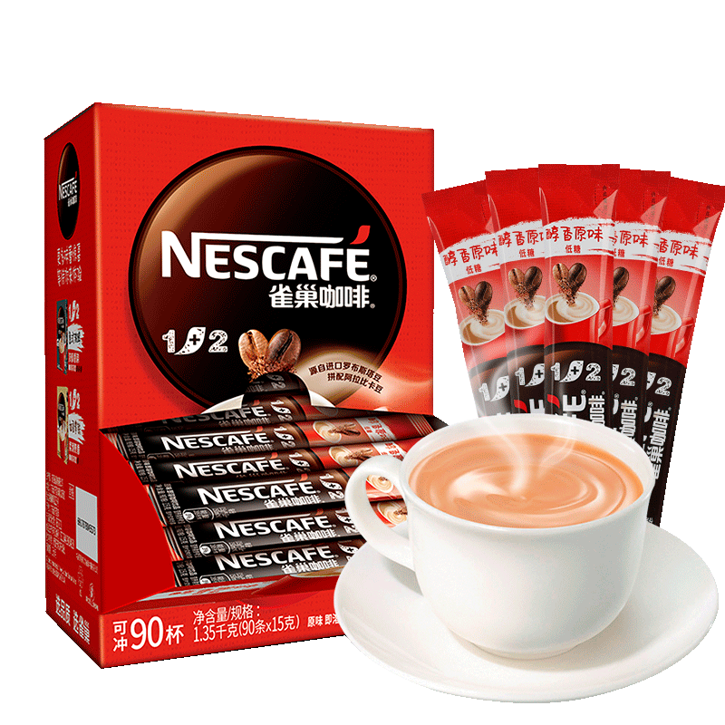 雀巢咖啡90条装1+2原味三合一速溶特浓提神官方旗舰店巢雀咖啡粉